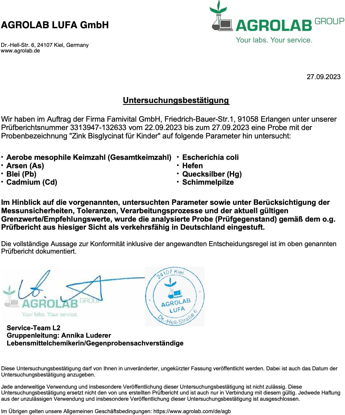 Um die Qualität und Sicherheit unserer Produkte zu gewährleisten, lassen wir unsere Produktionschargen von einem unabhängigen deutschen Labor prüfen. Diese Prüfungen stellen sicher, dass unsere Produkte den höchsten Standards entsprechen und Ihnen qualitativ hochwertige pflanzliche Nahrungsergänzungsmittel auf dem Markt bieten.